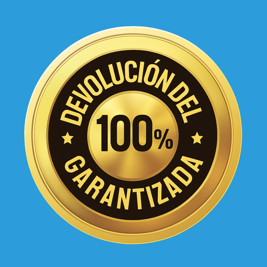 Si en un periodo de 30 días después de recibir tu producto no estás satisfecho con tu compra, podrás devolverlo y te reembolsaremos el 100% de tu dinero, sin hacer preguntas.